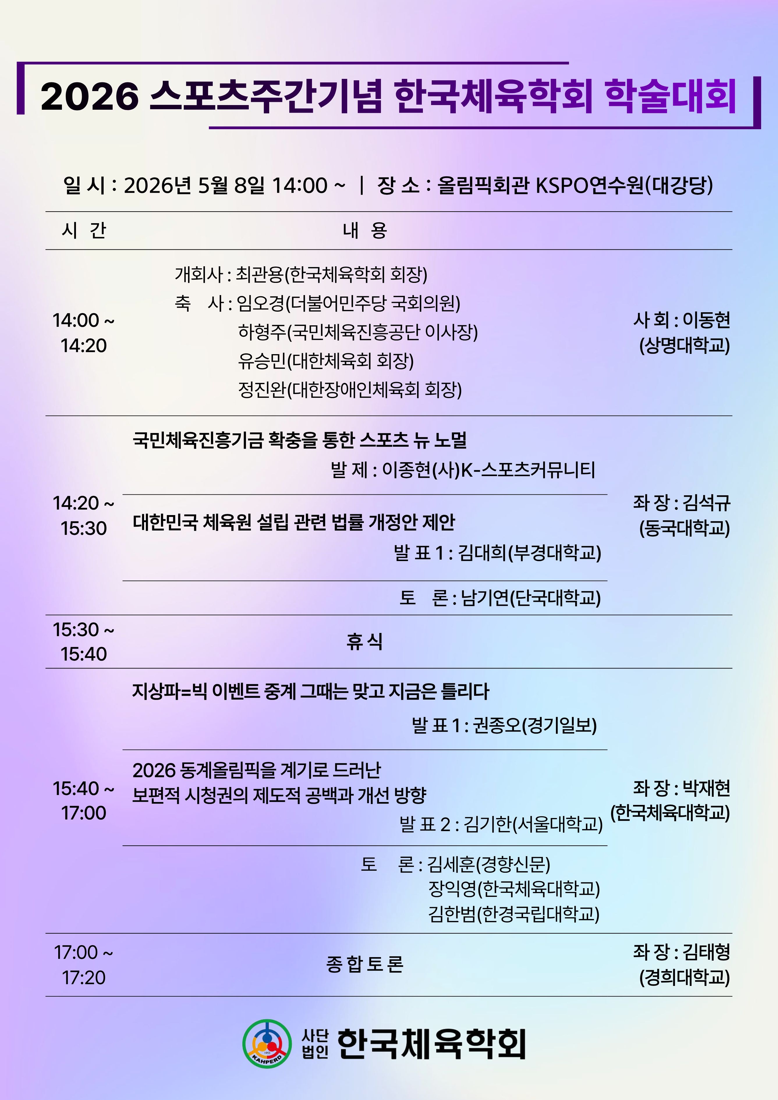 안녕하세요. 한국체육철학회에서 발간하는 『움직임의 철학: 한국체육철학회지』 34권 2호에 게재할 원고를 모집합니다. 논문 투고 기간은 4월 1일(수)~ 5월 10일(일) 23:59시까지이며 학술지 발간 예정일은 6월 30일(화)입니다.